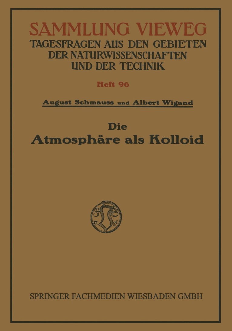 Dieser Buchtitel ist Teil des Digitalisierungsprojekts Springer Book Archives mit Publikationen, die seit den Anfängen des Verlags von 1842 erschienen sind. Der Verlag stellt mit diesem Archiv Quellen für die historische wie auch die disziplingeschichtliche Forschung zur Verfügung, die jeweils im historischen Kontext betrachtet werden müssen. Dieser Titel erschien in der Zeit vor 1945 und wird daher in seiner zeittypischen politisch-ideologischen Ausrichtung vom Verlag nicht beworben.
