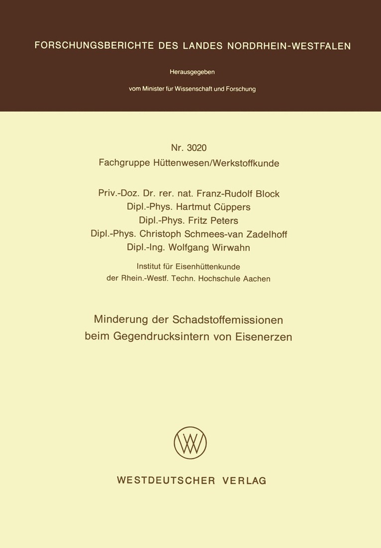 Del i serien Forschungsberichte des Landes Nordrhein-Westfalen