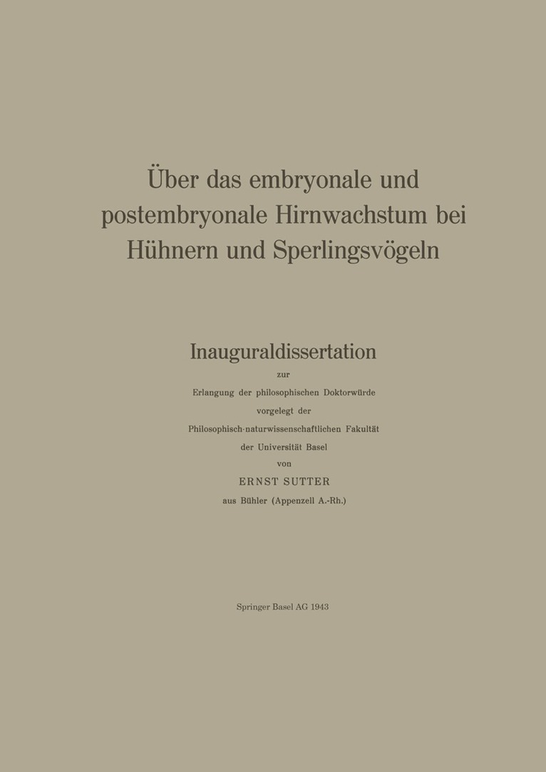 Über das embryonale und postembryonale Hirnwachstum bei Hühnern und SperlingsvögelnE. Sutter, R. Steiff-BeckerHäftad499 kr