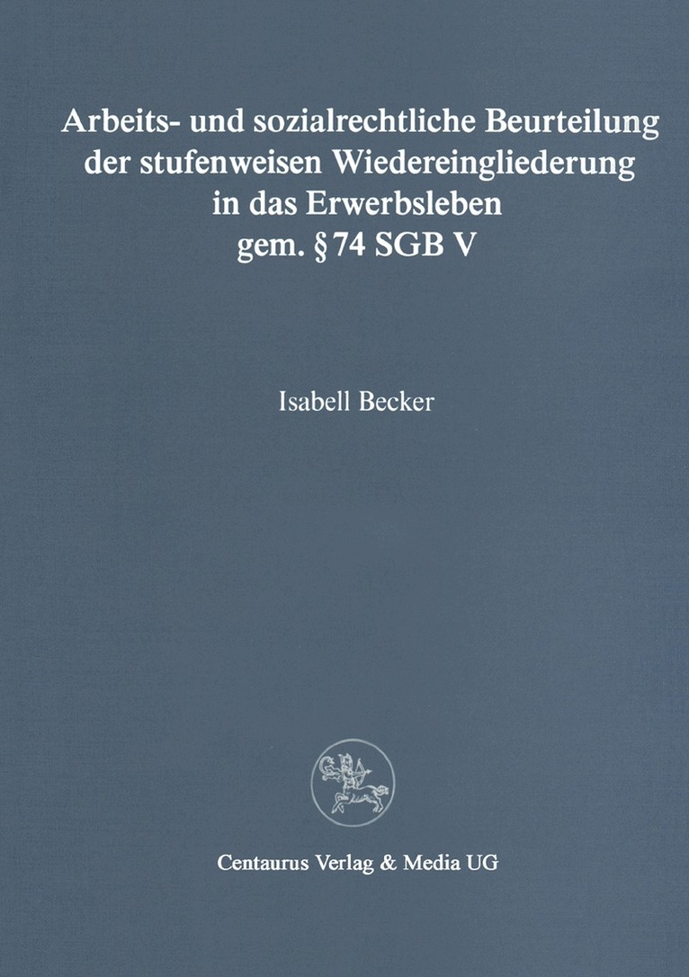 Arbeits- und sozialrechtliche Beurteilung der stufenweisen Wiedereingliederung in das Erwerbsleben gem. § 74 SGBVIsabell BeckerHäftad393 kr
