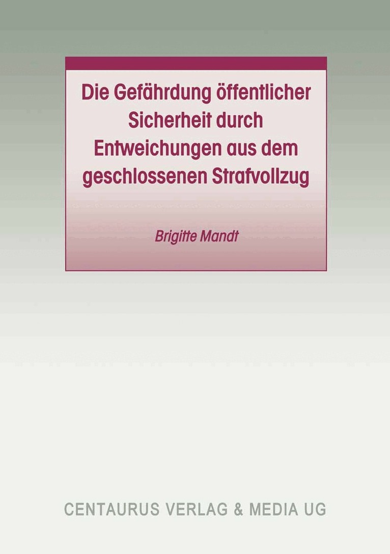 Del 25 i serien Studien und Materialien zum Straf- und Massregelvollzug