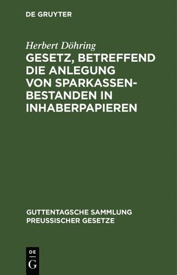 Del 54Gesetz, Betreffend Die Anlegung Von Sparkassenbestanden in InhaberpapierenHerbert DöhringInbunden1 757 kr