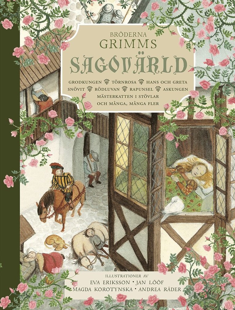 Välkommen in i sagornas förtrollade värld! Denna vackra och ljuvligt illustrerade samlingsvolym innehåller 35 av bröderna Grimms odödliga sagor. Här återberättas de klassiska och mest älskade sagorna som till exempel Rödluvan, Mästerkatten i stövlar, Hans och Greta, Rapunzel och Askungen, men också mindre kända sagor som De tre fjädrarna, Haren och igelkotten, Gåspigan och Grodkungen. Alla berättelserna har bearbetats och förkortats för att passa barn från fyra år.