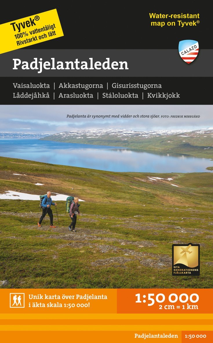 Den här fjällkartan är framtagen i samarbete med föreningen Laponiatjuottjudus som förvaltar världsarvet Laponia där Muttos nationalpark ingår. Skalan över nationalparken är 1:50 000 medan baksidan som visar stora delar av Sjávnja naturreservat i skala 1:100 000. Vi har kommit fram till att det bästa materialet för en karta är Tyvek®. Det är gjort av en syntetfiber som gör kartan helt okänslig för vatten och mycket rivtålig. En Tyvekkarta går inte sönder i vecken eller tappar färgen när du använder den.