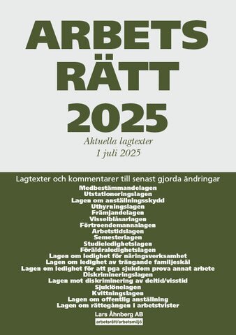 Arbetsrätt 2026 - 1 januari, innehåller hela lagtexten i de arbetsrättslagar som ingår i lagsamlingen och kommenterar senast gjorda ändringar i dessa lagar.