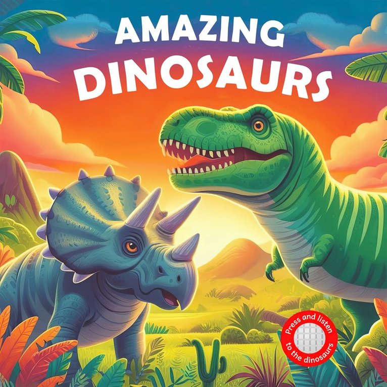 Tryck på knapparna på sidorna i denna bok för att höra de spännande ljuden från en tid då dinosaurierna levde, bland annat en T-rex som ryter och en Triceratopsunge som piper när den tittar ut ur sitt ägg. De färgglada sidorna visar hur denna intressanta värld kunde se ut, med enkel text och förtjusande illustrationer. Boken passar en bred åldersgrupp från 2 år till 10 år. 12 olika ljud.