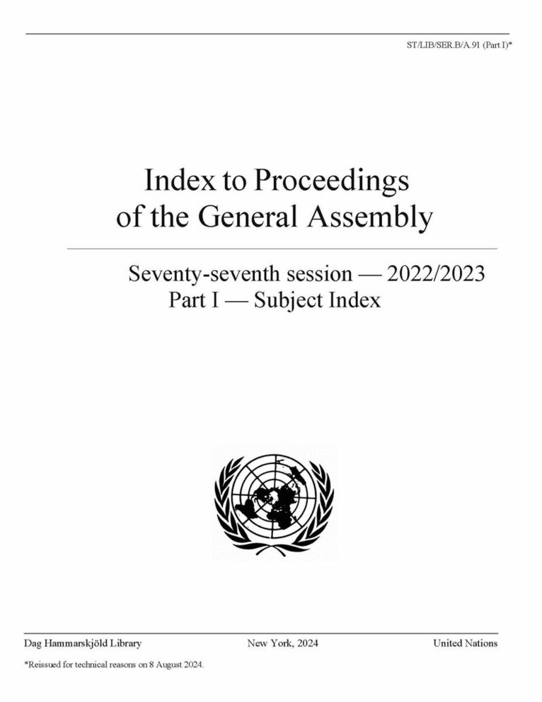 Del i serien Index to Proceedings of the General Assembly