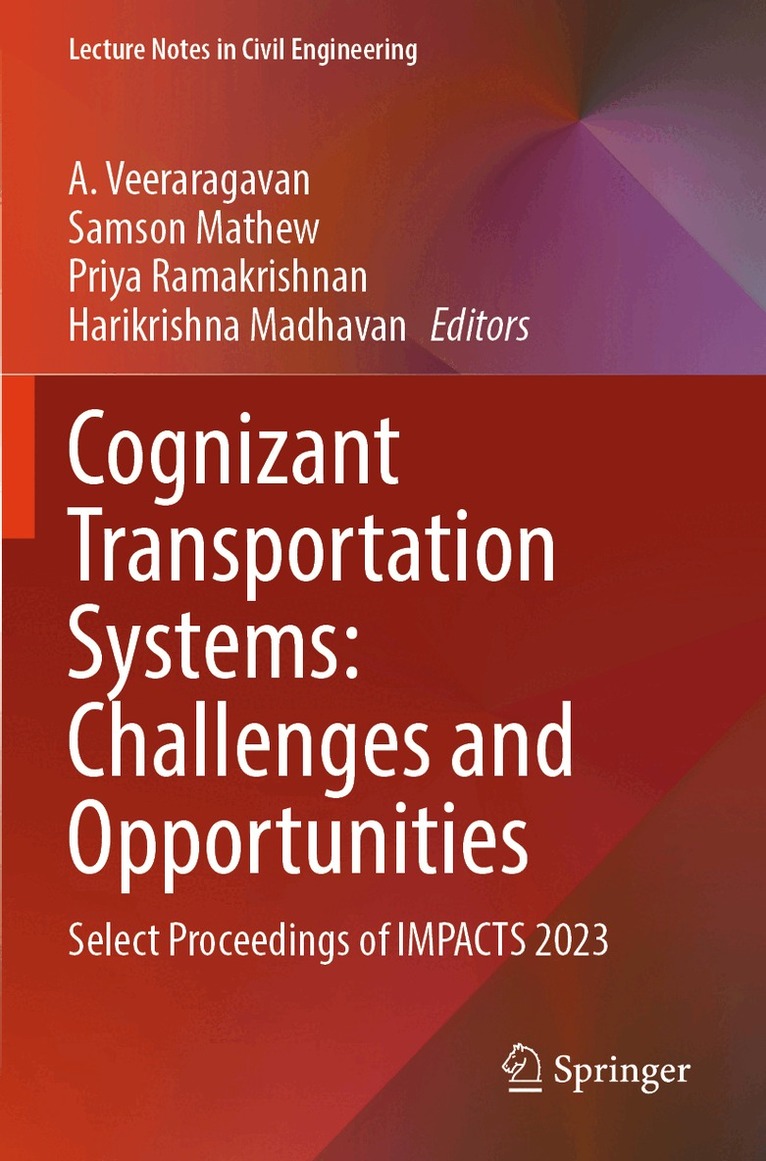 Dr. M.V.L.R. Anjaneyulu is currently working as Professor in the Department of Civil Engineering, National Institute of Technology Calicut. He is having more than 30 years of teaching, research and consultancy experience in Transportation Engineering. His areas of research interest include urban transportation planning, travel behavior studies, traffic flow analysis and modeling, traffic safety analysis and evaluation and applications of GIS in transportation. He has guided seven Ph.D. works and presently guiding eight Ph.D. scholars. He has guided nearly 160 postgraduate dissertation works. He has published more than 180 research papers in various journals and conferences. He is a recipient of IRC Best Research Paper award in 1998 and 2014. He is the coordinator of the Centre for Transportation Research, a Centre of Excellence set up under FAST scheme, with support from MoE, GoI. He is also coordinator of ‘State Technical Agency’ for implementation of PMGSY schemein northern districts of Kerala under NRIDA, MoRD. He has successfully completed seven research projects sponsored by different agencies. He organised more than 20 training programs for field engineers and engineering faculty.Dr. Harikrishna M is working as Assistant professor in the Department of Civil Engineering, National Institute of Technology Calicut. He has completed his bachelor’s degree in Civil Engineering from College of Engineering Trivandrum, Kerala University and master’s degree from College of Engineering Guindy, Anna University. He completed his doctoral studies from the Indian Institute of Technology Roorkee in the year 2013. He joined NIT Calicut in 2005. His research interests include ‘Travel behavior modeling’; ‘Stated and Revealed Preference Survey planning and design’ and ‘Capacity and Level of Service Estimation of Transport Facilities’. He has published several research papers in international and national journals and conferences. He has guided 16 projects at the undergraduate level and 50 projects at the postgraduate level and is currently guiding four research scholars. He is a team member of the Centre for Transportation Research, a Centre of Excellence set up under FAST scheme, with support from MoE, GoI. He has conducted faculty development programs in the areas of Urban Transport Systems Planning, Traffic Engineering and Advanced Surveying. He is also a member in professional bodies such as the Indian Roads Congress and the Indian Society for Technical Education. He is the Reviewer of journals such as ASCE Journal of Transportation Engineering, Part A: Systems and Transportation Research Interdisciplinary Perspectives.Dr. Shriniwas S. Arkatkar is currently working as ‘Associate Professor’ in the Civil Engineering Department at SVNIT Surat. Recently, he was appointed as ‘Adjunct Professor’ at the Department of Civil Engineering, Ryerson University, Ontario, Canada. Prior to joining SVNIT Surat, he worked in the Department of Civil Engineering at BITS, Pilani, Rajasthan. Presently, he holds more than 15 years of experience in teaching, research, and consultancy with a specialization in different areas of transportation engineering. Before joining BITS, he pursued his Ph.D. research in the Transportation Engineering Division, Department of Civil Engineering, IIT Madras. His research interests are: traffic flow modelling and simulation, Intelligent transportation systems (ITS), public transportation and sustainable transportation, and road safety and simulation. He has guided eight doctoral students and more than fifty postgraduate students on their dissertation topics from his research interests. He has coordinated over 8 major research projects with a budget over Rs. 5 crores. Currently, he is guiding eight doctoral students on different topics of traffic and transportation engineering. He has published over 100 research papers in journals and over 200 papers in national and international conference proceedings. He is currently member of Indian Roads Congress (IRC), Institute of Urban Transport (IUT), and Transportation Research Group of India (TRG). Presently, he is serving as the Vice President, Transportation Research Group India (TRG). He is also serving as Associate Editor for the journals, Transportation letters, The International Journal of Transportation Research (Taylor and Francis), IET Intelligent Transportation Systems (ITS), Wiley Publications and Journal of Advanced Transportation, Hindawi/Wiley Publications.Dr. A. Veeraragavan is a Professor in the Department of Civil Engineering at IIT Madras. He has over four decades of experience in teaching, research and industrial consultancy. Prof. Veeraragavan received the Indian Roads Congress (IRC) Pandit Jawaharlal Nehru Birth Centenary Award for his outstanding contributions in the field of highway engineering, IRC Medals for his best papers, , IRC Commendation certificates, UGC Career Award, National Award for Promising Engineering College Teacher in India from the Indian Society for Technical Education, Vishwakarma Award under the category—Outstanding Academician/Technologist/ Scientist/Innovator from the Construction Industry Development Council and the Award for Distinguished Services to the Institute from the IIT Madras Alumni Association. Prof. Veeraragavan has published over 100 research papers in national and international journals and over 150 papers in national and international conference proceedings. He has coordinated several major research projects sponsored by the DST, MoRTH, AICTE, NRIDA etc. Currently, he is coordinating (networking with ten academic institutions) two major research projects sponsored by NRIDA on performance evaluation of rural roads constructed with waste plastics in premixed carpet wearing course and performance evaluation of rural roads constructed with cold bituminous mixes in wearing courses. He hasco-authored four books on: Surveying, Highway Engineering (11th edition und