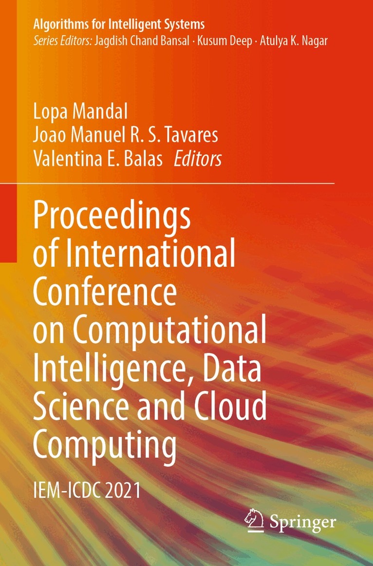 Dr. Valentina Emilia Balas is currently Full Professor in the Department of Automatics and Applied Software at the Faculty of Engineering, “Aurel Vlaicu” University of Arad, Romania. She holds a Ph.D. in Applied Electronics and Telecommunications from Polytechnic University of Timisoara. Dr. Balas is the author of more than 250 research papers in refereed journals and international conferences. Her research interests are in intelligent systems, fuzzy control, soft computing, smart sensors, information fusion, modeling, and simulation. She is Editor-in-Chief to International Journal of Advanced Intelligence Paradigms (IJAIP) and to International Journal of Computational Systems Engineering (IJCSysE), an Editorial Board member of several national and international journals, and Director of Intelligent Systems Research Centre in Aurel Vlaicu University of Arad. She is a member of EUSFLAT and SIAM and a senior member of IEEE, a member in TC – Fuzzy Systems (IEEE CIS), a member in TC – Emergent Technologies (IEEE CIS), and a member in TC – Soft Computing (IEEE SMCS). Professor Aboul Ella Hassanein is Founder and Chairman of the Scientific Research Group in Egypt, Cairo University (SRGE), and Professor of Information Technology at the Faculty of Computer and Artificial Intelligence, Cairo University. Professor Hassanien is Ex-Dean of the faculty of computers and information, Beni Suef University. Professor Hassanien has more than 1000 scientific research papers published in prestigious international journals and over 45 edited books/textbooks covering such diverse topics as data mining, medical images, intelligent systems, bioinformatics, social networks, aerospace engineering, and smart environment. His other research areas include computational intelligence, medical image analysis, security, animal identification, space sciences and telemetry mining and multimedia data mining. Prof. Hassanien won several awards including the Best Researcher of the Youth Award of Astronomy and Geophysics of the National Research Institute, Academy of Scientific Research (Egypt, 1990). He also received the State Award for Excellence in Engineering Sciences 2015. He holds the Medal of Sciences and Arts first-class from President of Egypt (2017). Dr. Satyajit Chakrabarti is Pro-Vice Chancellor, University of Engineering & Management, Kolkata and Jaipur Campus, India and Director of Institute of Engineering & Management, IEM. As the Director of one of the most reputed organizations in Engineering & Management in Eastern India, he launched a PGDM Program to run AICTE approved Management courses, Toppers Academy to train students for certificate courses, and Software Development in the field of ERP solutions. Dr. Chakrabarti was Project Manager in TELUS, Vancouver, Canada from February 2006 to September 2009, where he was intensively involved in planning, execution, monitoring, communicating with stakeholders, negotiating with vendors and cross-functional teams, and motivating members. His research interest includes Data Mining, Nano Electronics, Nanotechnology. He has got many journal and conference publications and edited books to his credit.Dr. Lopa Mandal is currently Professor of Department of Information Technology, Institute of Engineering & Management, Kolkata, India. She has completed her M.Tech/IT and Ph.D (Engineering) from Jadavpur University, Kolkata, India. Her research interest includes Artificial Intelligence, Data analytics, Distributed & cloud computing, Mobile computing and Learning technologies. She has got many National and International journal and conference publications and book chapters to her credit. She has been a Technical Program Committee member of different International Conferences and editorial/review board member of International Journals. She has been the convener or organizing chair and also part of the organizing committee of different International Conferences. She is also a member of Computer Society of India. She has got around 20 years of work experience in industry and academia.