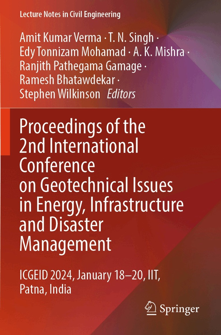This book consists of selected papers presented at the 2nd International Conference on Geotechnical Issues in Energy, Infrastructure and Disaster Management (ICGEID 2024), held on January 19-20, 2024 at IIT, Patna, India. The papers represent the research work in the related fields of underground mining, ground control, mining geotechnics, geo-instrumentation, mine tunneling, and underground structures. It focuses on the latest technology being implemented including artificial intelligence and machine learning applications to solve challenges in mining tunneling and geotechnical structure engineering. It also highlights the state-of-the-art technologies adopted by the civil and mining industry for their commercial as well as environmental benefits. The papers are presented by an international pool of academics, research scientists, and industrial experts and therefore cater to the global audience from the field of underground engineering.