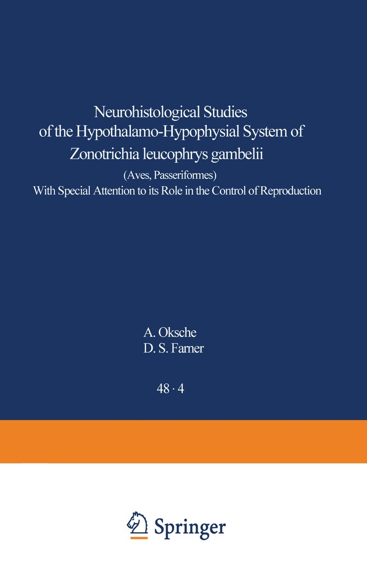 The anatomical description of the hypothalamo-hypophysial system of the White-crowned Sparrow, Zonotrichia leucophrys gambelii, as presented in this treatise, is by no means of definitive nature. Research in this area, in our own laboratories and elsewhere, continues at such a pace and is sufficiently in flux as to preclude the possibility of definitive morphological and functional conclu- sions at this time. Nevertheless, we do believe that there is now some genuinely heuristic value in a presentation of our neuroanatomical material. Most of this material is derived from the above-mentioned species which has received primary attention in our experimental investigations. In the course of our studies, it has become clear that the hypothalamo- hypophysial system of birds has attained morphological differentiation and spe- cialization as extensive as that of mammals. In order not to lose sight of the basic pattern of the system, comparative aspects must be brought into con- sideration. With this in mind we emphasize the fundamental contributions of Huber and Crosby, Kuhlenbeck, Benoit, Assenmacher and vVingstrand.The ana- tomical nomenclature of the avian hypothalamus has been critically examined and rationalized, to the extent possible, from a comparative view-point. In recent years this nomenclature has developed in such an independent and isolated manner that the confusion created can no longer be ignored. 'Ve dedicate our treatise to the memory of Professor Ernst Scharrer who originally stimulated our investigations.
