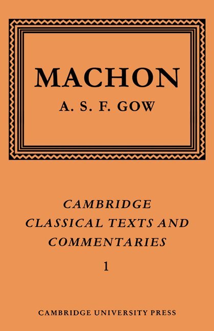 Machon was a writer of Comedies who lived and worked in Alexandria in the middle of the third century B.C. All of his work that survives is preserved in the Deipnosophistae of Athenaeus who, besides two fragments of Comedies of no great importance, quotes also 462 verses from a collection of anecdotes which Machon called Xpeiai. These anecdotes are written in the iambic verse of Comedy. They are concerned with the doings and sayings of courtesans, parasites, and musicians, sometimes in relation to persons of historical importance. They are often scabrous but also not infrequently amusing; and they are of considerable interest both as documents of social history and as a type of literature which, though popular in antiquity, has hardly survived. The Xpeiai, which present many problems of reading and interpretation, have never before been separately edited. Recent editors of Athenaeus have improved the text; but to find commentaries it is necessary to go back to Casaubon's edition of Athenaeus, published in 1600, and to Schweighauser's, published in 1801-7.