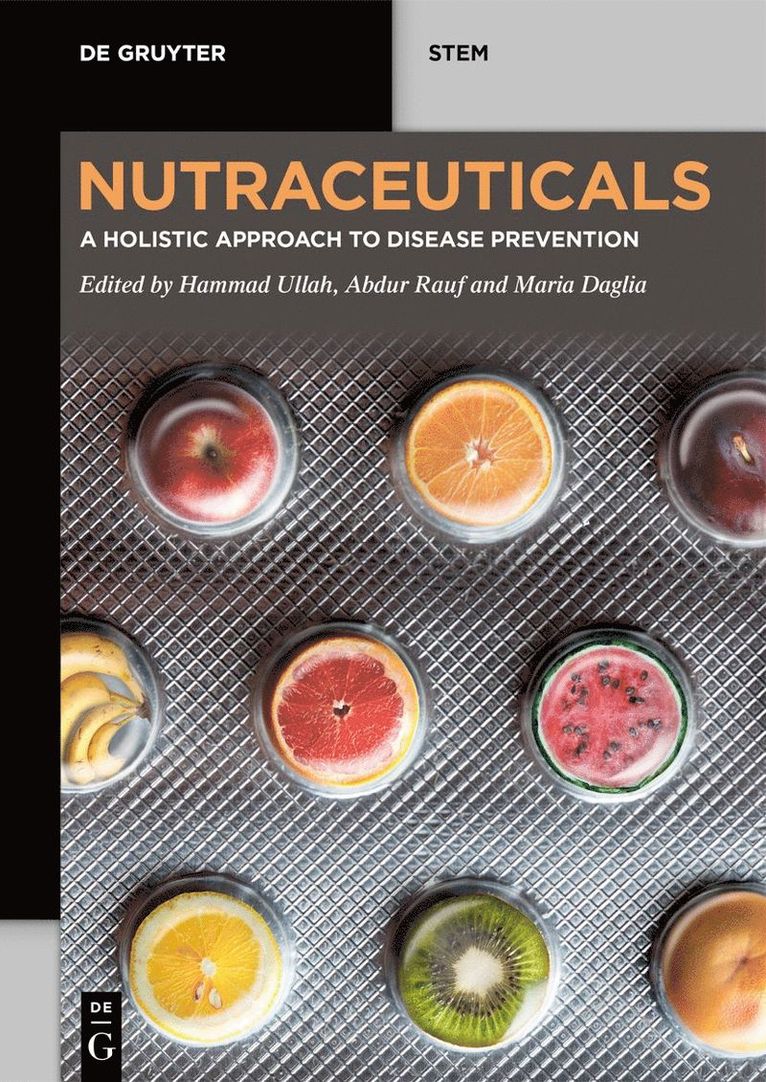The term nutraceuticals is applied to the products isolated from the herbal sources, nutrients or dietary supplements, processed foods, (cereals, soup and beverages) and specific diets, that may also used as medicine other than nutrition. It usually refers to the foods derived products which may sell in medicinal form, possessing physiological benefits to the host while promoting health and wellness and provide protection against chronic disorders. They may also increase the life expectancy, delay the aging and/or support the structure and function of the body organs. Demand for nutraceuticals with potential to prevent and treat chronic disorders has been interestingly increasing over the past few years. Based on food sources, nutraceuticals are classified into dietary fibers, probiotics, prebiotics, polyunsaturated fatty acids (PUFAs), vitamins, polyphenols and spices. A dietary supplement is generally considered as product containing vitamins, minerals, amino acids, and medicinal plants that are indented to be used to supplement the diet or a concentrate, metabolite, constituent, extract, or combinations of these ingredients. Broadly, nutraceuticals are any of these ingredients or supplements using for health purposes other than nutrition. This book on the fundamentals of Nutraceuticals is organized in two parts i.e., the introductory aspects of macro- and micro-nutrients, gut microbiota regulation, nutraceuticals and drug interactions, while the second part is focusing on the biological benefits of nutraceuticals in different disease states. Besides, this book is also addressing the safety aspects of nutraceuticals and phytotherapeutic support in pregnancy. Including contributions from the experts in the field, target audience (pharmacists, nutritionists, other healthcare providers, and researchers in food and nutrition sector) will be benefited with the updated literature on nutraceuticals and dietary supplements.