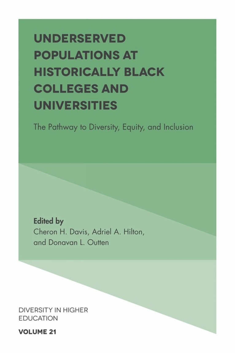 This book focuses on the lived experiences of underserved student and faculty populations at historically Black colleges and universities (HBCUs) and the implications these experiences have for higher education policy. Contributors discuss the contexts and experiences of students and faculty who navigate the political and social spaces of HBCUs while supporting healthy personal and robust professional goals. The stigmas and social nuances that plague students and faculty of color do not dissolve with their arrival at an HBCU, but rather they transform into a new set of challenges that demand the attention of researchers. Taking into account institutional supports, identity development, and socialization patterns, this book sheds light on what the experiences of higher education’s “outsiders” mean for future research and practice, while emphasizing issues of diversity, equity, and inclusion.