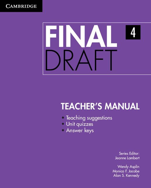 Final Draft helps students become confident and effective writers, and prepares them for success in their university studies. Final Draft Level 4 Student's Book with Digital Pack gives you all the tools you need to become confident and effective writers and succeed in your future studies. Academic vocabulary, collocations, phrases, and detailed information on the grammar of writing prepare you for college writing courses. Editing activities based on the most common grammar mistakes helps promote accuracy in your writing. The Digital Pack includes an eBook and Writing Skills Interactive for additional instruction and practice in academic writing skills and vocabulary. All content is mobile-friendly, so can be accessed on smartphones, laptops or desktop computers.