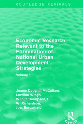 Originally published in 1971, this volume contains papers invited for a conference on economic research relevant to national urban development held in September of the same year. The conference pulled together researchers from both the United Kingdom and the United States who were interested in economic research on key issues of both countries’ management of their urban areas. Papers are varied from those in the early stages of research to those whose research has been completed and all provide an insight into the increase of urbanisation present in the first world. This title will be of interest to students of environmental studies and economics.