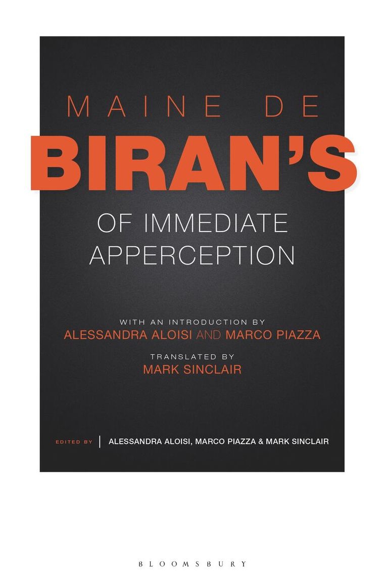 Written when Maine de Biran was coming into his philosophical maturity, in 1807, 'Of Immediate Apperception' was the first complete statement of his own philosophy of the will. It was the winning entry to a competition organised by the Berlin Académie des Sciences et Belles-Lettres on the subject of self-awareness and of the possibility of an ‘immediate apperception’ of the self. It contains the core of Biran’s philosophy of effort, as it is developed in dialogue with the tradition of British empiricism in particular. Notably, it is in this work that Biran first reflects on the ‘lived body’ and it marks the moment in which he fully accomplishes his break away from Condillac and the Ideological school. With enlightening critical apparatus, including an editor's introduction, glossary, and bibliography, the publication of this edition shows how Biran's work is pivotal for the development of French philosophy, and makes clear his influence on the later writings of Ravaisson and Bergson.