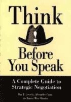 Think Before You SpeakThink Before You Speak takes you through the entire negotiation process in all its variations and contexts, both in business and everyday life. By preparing you to think clearly and strategically, this invaluable guide gives you an edge that will help you to achieve success while maintaining the best possible relations with those opposing you. Here's an outline of how Think Before You Speak leads you through the strategic negotiation process:CHAPTER & TOPIC* Overview/Plan* Assess Your Position* Assess Other Party* Analyze Context* Selecting a Strategy* Competition* Collaboration* Other Strategies* Building Collaboration* Resolving Conflict* Third Party Help* Communicating* Legal/Ethical Issues* Multiple Parties* Global Negotiation* Improving NegotiationSTEP IN PROCESS* ANALYZE STRATEGIC ISSUES* SELECT A STRATEGY* INITIATE THE NEGOTIATION PROCESS* MANAGE THE NEGOTIATION PROCESS* OBTAIN OUTCOMES AND LEARN FROM THE EXPERIENCEPractical, authoritative, and comprehensive, Think Before You Speak gives you the tools to handle any negotiation with confidence.