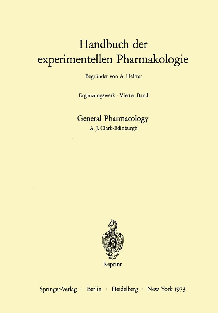 The author's general aim has been to survey as wide a field of evidence as possible and this had involved excursions into subjects of which he has little first hand knowledge. This width of range also has necessitated a somewhat arbitrary selection of evidence and has prevented full discussion of any indi- vidual problem. The author trusts that he has not misrepresented anyone's results or opinions, and if this has occurred, he can only plead in excuse the peculiar difficulty of giving a brief and yet accurate account of evidence of such a wide variety. The diagrams reproduced in the article have all been redrawn and in many cases the original figures or diagrams have been modified as, for instance, by recalculating dosage on the logarithmic scale. The original authors therefore have no direct responsibility for the diagrams in their present form. The author desires to thank Messrs Arnold and Co. for permitting the repro- duction of Figs. 9 and 23 from similar figures which appeared in his book "The Mode of Action of Drugs on Cells"; portions of other figures from this book also have been reproduced in modified form. The author also desires to thank Dr. J. M.ROBSON for help in correction of the proofs. Edinburgh, July, 1937. A. J. CLARK. Contents.