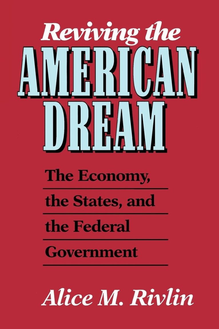 The American dream is fading: for nearly two decades, the economy has been performing below par, the quality of life has deteriorated, and the government has not confronted the public problems that concern citizens most. In this provocative book, Alice Rivlin offers a straightforward, nontechnical look at the issues threatening the American dream and proposes a solution: restructure responsibilities between the federal and state government.Under her plan, the federal government would eliminate most of its programs in education, housing, highways, social services, economic development, and job training, enabling it to move the federal budget from deficit toward surplus. States would pick up these responsibilities, carrying out a ""productivity agenda"" to revitalize the American economy. Common shared taxes would give the state adequate revenues to carry out their tasks and would reduce intrastate competition and disparities. The federal government would be freer to deal with increasingly complex international issues and would retain responsibility for programs requiring national uniformity. A primary federal job would be the reform of health care financing to ensure control of costs and to mandate basic insurance coverage for everyone.Published in the summer of 1992, Reviving the American Dream was read by presidential candidate Bill Clinton; by year's end, President Clinton appointed its author, Alice Rivlin, as deputy budget director. Today, the ideal in Rivlin's bookand Rivlin herselfare having an impact inside the administration.Selected as one of Choice magazine's Outstanding Books of 1993