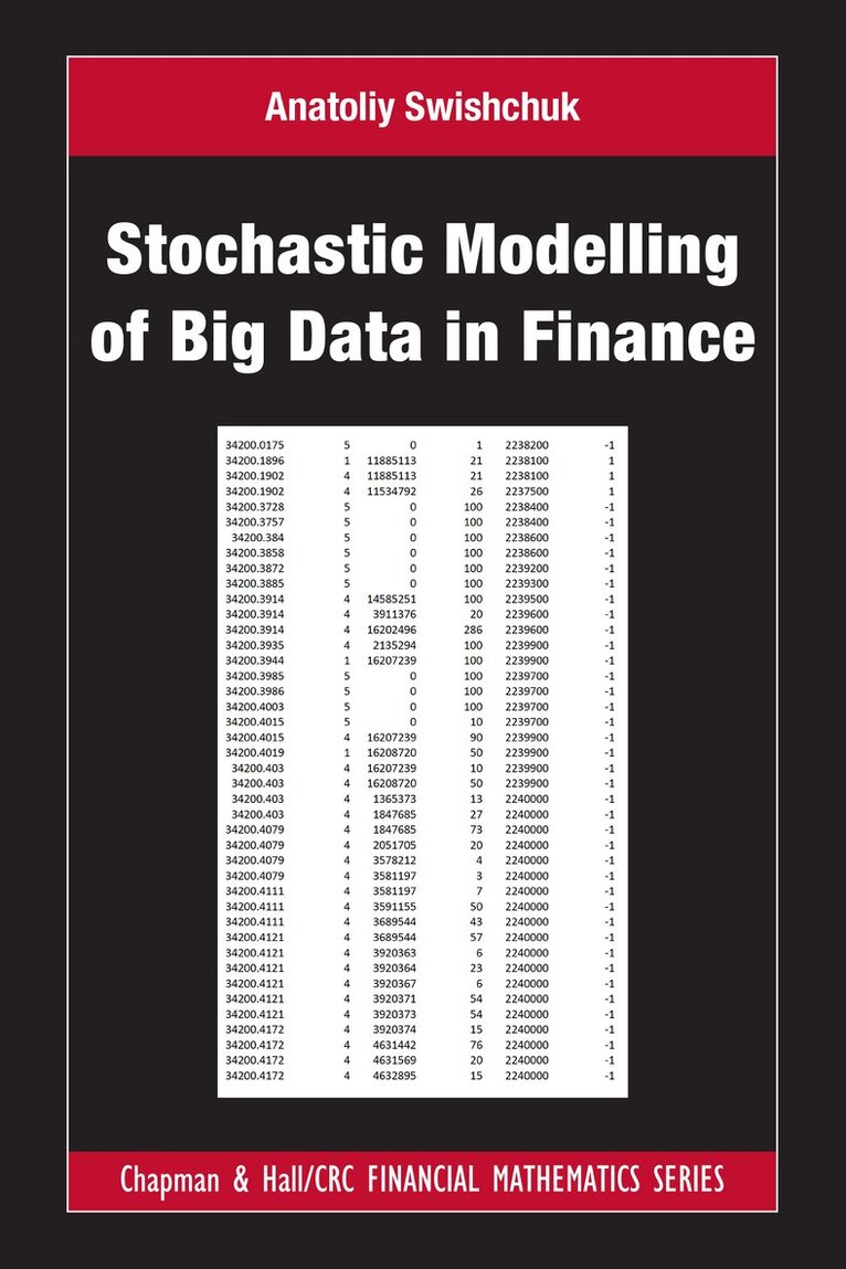 Stochastic Modelling of Big Data in Finance provides a rigorous overview and exploration of stochastic modelling of big data in finance (BDF). The book describes various stochastic models, including multivariate models, to deal with big data in finance. This includes data in high-frequency and algorithmic trading, specifically in limit order books (LOB), and shows how those models can be applied to different datasets to describe the dynamics of LOB, and to figure out which model is the best with respect to a specific data set. The results of the book may be used to also solve acquisition, liquidation and market making problems, and other optimization problems in finance.FeaturesSelf-contained book suitable for graduate students and post-doctoral fellows in financial mathematics and data science, as well as for practitioners working in the financial industry who deal with big dataAll results are presented visually to aid in understanding of conceptsDr. Anatoliy Swishchuk is a Professor in Mathematical Finance at the Department of Mathematics and Statistics, University of Calgary, Calgary, AB, Canada. He got his B.Sc. and M.Sc. degrees from Kyiv State University, Kyiv, Ukraine. He earned two doctorate degrees in Mathematics and Physics (PhD and DSc) from the prestigious National Academy of Sciences of Ukraine (NASU), Kiev, Ukraine, and is a recipient of NASU award for young scientist with a gold medal for series of research publications in random evolutions and their applications.Dr. Swishchuk is a chair and organizer of finance and energy finance seminar ‘Lunch at the Lab’ at the Department of Mathematics and Statistics. Dr. Swishchuk is a Director of Mathematical and Computational Finance Laboratory at the University of Calgary. He was a steering committee member of the Professional Risk Managers International Association (PRMIA), Canada (2006-2015), and is a steering committee member of Global Association of Risk Professionals (GARP), Canada (since 2015).Dr. Swishchuk is a creator of mathematical finance program at the Department of Mathematics & Statistics. He is also a proponent for a new specialization “Financial and Energy Markets Data Modelling” in the Data Science and Analytics program. His research areas include financial mathematics, random evolutions and their applications, biomathematics, stochastic calculus, and he serves on editorial boards for four research journals. He is the author of more than 200 publications, including 15 books and more than 150 articles in peer-reviewed journals. In 2018 he received a Peak Scholar award.