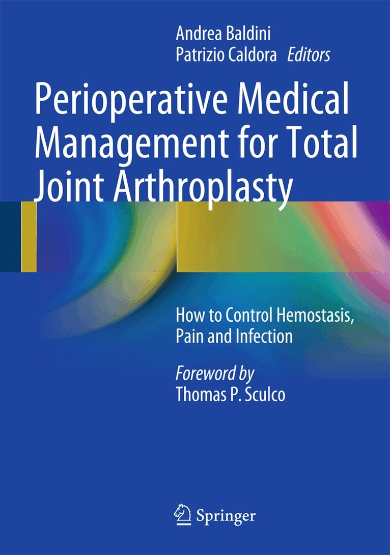This volume describes the most recent medical guidelines for perioperative management in arthroplasty with the aim of facilitating excellent control of bleeding/thrombosis, pain and infection. For each area – hemostasis control, pain control and infection control – hot topics of key practical importance are discussed and contrasting perspectives are presented on controversial issues, covering the views of different practitioners and specialties. Using the information contained in this book, the practitioner will be in an excellent position to meet the principal goals of perioperative medical management. The information provided will assist in the choice of a multimodal guideline that minimizes the complication rate regarding bleeding and thromboembolism while not interfering with the patient’s recovery. Similarly, effective means of pain control and an optimized pain control protocol are discussed with a view to shortening hospital stay and achieving functional milestones that meet the patient’s expectations. Finally, host, wound and environmental factors relevant to infection and its prevention are explained, with discussion of the best means of prophylaxis, treatment and imaging. Surgeons, anesthesiologists and all medical practitioners and staff involved in the field of total hip and knee arthroplasty will find this book to be of value in their daily clinical practice. It will assist in the provision of enhanced medical management that ensures quicker recovery of the patient with fewer complications.