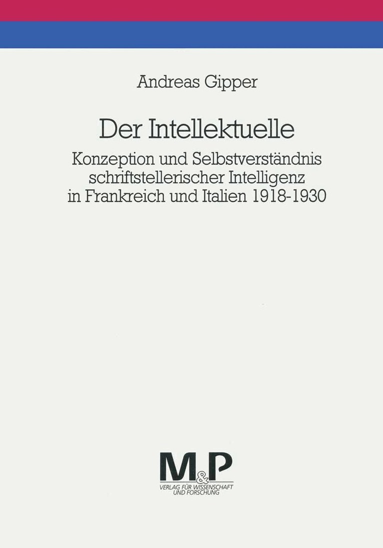 Konzeption und Selbstverständnis schriftstellerischer Intelligenz in Frankreich und Italien 1918-1930. M&P Schriftenreihe