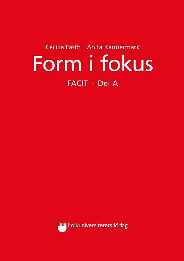 Facit till övningsboken Form i fokus A. (Obs! Facit till andra upplagan 2016.)Form i fokus består av tre övningsböcker i svensk grammatik för undervisning i sfi, svenska som andraspråk och svenska som främmande språk. Böckerna är avsedda för vuxna som nyligen börjat sina svenskstudier eller som behöver en repetition av grunderna i grammatiken från nybörjarnivån.Form i fokus kombinerar övningar med grundlig presentation av regler och mönster. Varje moment belyses med tydliga exempel. Övningarna har stor variation vilket gör grammatikträningen stimulerande.Varje bok innehåller både fria och bundna övningar och språket är vardagligt och idiomatiskt. Bok A är rik på illustrationer som stöder ordinlärningen. Facit finns (köps separat).En reviderad, andra upplaga av Form i fokus A och Form i fokus A facit utkom 2016.