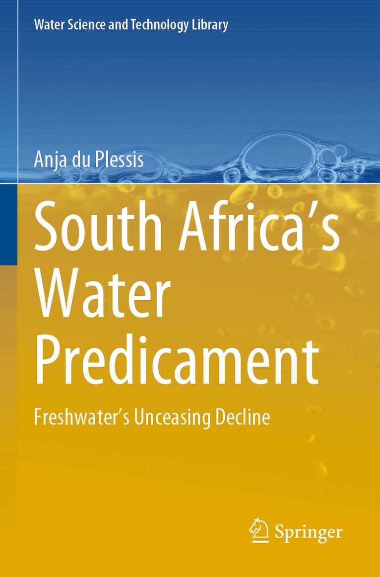 The book provides a critical evaluation of South Africa’s freshwater resources to illustrate the way in which its freshwater resources, water access, services and infrastructure have continued to decline over the past three decades. The continued decline of water governance, management, water service delivery, dilapidated water infrastructure, dysfunctional local governments and overall excessive water degradation is illustrated and emphasized using real-life examples and case studies from various contexts within the country.The main argument of the book is that South Africa’s freshwater resources have declined to such an extent that it can be described as a predicament. Questionable water governance decisions and reactive water management practices have led to no improvement and/or increased degradation of freshwater resources. An overall lack of service delivery exists across the country, in various contexts, leading to further water and social decline.An inter-disciplinary evaluation of South Africa’s current water predicament is provided, major water crises are prioritized, and suitable recommendations are given to transform its predicament into problems which can be addressed. Suitable background information is given to emphasize the necessity of good water governance, management, and service delivery. South Africa’s freshwater resources are evaluated with specific focus on the decline of informed water governance, management, service delivery and water quality. Factors requiring urgent attention are determined and suitable recommendations and/or actions are provided.An evaluation and overall synthesis focused on the transformation of the predicament into problems is provided. Primary water problems are prioritized according to urgency and suitable recommendations are given to assist in transforming the country’s current complex water predicament into “simpler” water problems. Political will, collaboration with researchers, stakeholders, non-governmental organizations, and cooperation of civil society is required.South Africa’s already scarce freshwater resources and decaying infrastructure will persist and possibly collapse if no major actions or interventions are implemented.