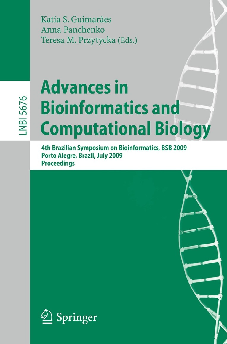 This volume contains the papers selected for presentation at the 4th Brazilian Sym- sium on Bioinformatics, BSB 2009, which was held in Porto Alegre, Brazil, during August 29–31, 2009. The BSB symposium had its origins in the Brazilian Workshop on Bioinformatics (WOB). WOB had three editions, in 2002 (Gramado, RS), in 2003 (Macaé, RJ), and in 2004 (Brasília, DF). The change in the designation from wo- shop to symposium reflects the increase in the quality of the contributions and also in the interest of the scientific community for the meeting. The previous editions of BSB took place in São Leopoldo, RS, in 2005, in Angra dos Reis, RJ, in 2007, and in Santo André, SP, in 2008. As evidence of the internationalization of the event, BSB 2009 had 55 submissions from seven countries. Of the 55 papers submitted, 36 were full papers, with up to 12 pages each, and 19 were extended abstracts, with up to 4 pages each. The articles submitted were carefully reviewed and selected by an international Program Comm- tee, comprising three chairs and 45 members from around the world, with the help of 21 additional reviewers. The Program Committee Chairs are very thankful to the - thors of all submitted papers, and especially to the Program Committee members and the additional reviewers, who helped select the 12 full papers and the six extended abstracts that make up this book.