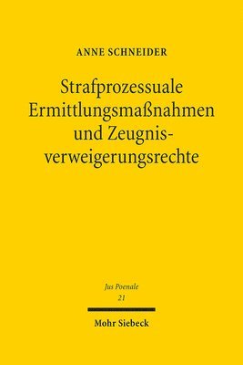 In der Strafprozessordnung gibt es etliche Regelungen, die für eine Beschränkung bestimmter Ermittlungsmaßnahmen auf die Zeugnisverweigerungsrechte verweisen. Anne Schneider geht der Frage nach, inwieweit sich diese Regelungen mit den Gründen für die Einführung von Zeugnisverweigerungsrechten vereinbaren lassen. Hierbei orientiert sie sich an der Methodik der Gesetzgebungslehre. Zunächst analysiert sie die Interessen der einzelnen Akteure und lotet die Grenzen aus, die höherrangiges Recht dem Gesetzgeber setzt. Auf Basis dieser Ergebnisse bewertet sie anschließend das geltende Recht. Es zeigt sich, dass kein Interesse die gesetzliche Regelung vollständig erklären kann. Im Ergebnis schlägt Anne Schneider daher eine Neuregelung für alle Ermittlungsmaßnahmen vor, die auf die Akzessorietät zum Zeugnisverweigerungsrecht verzichtet.