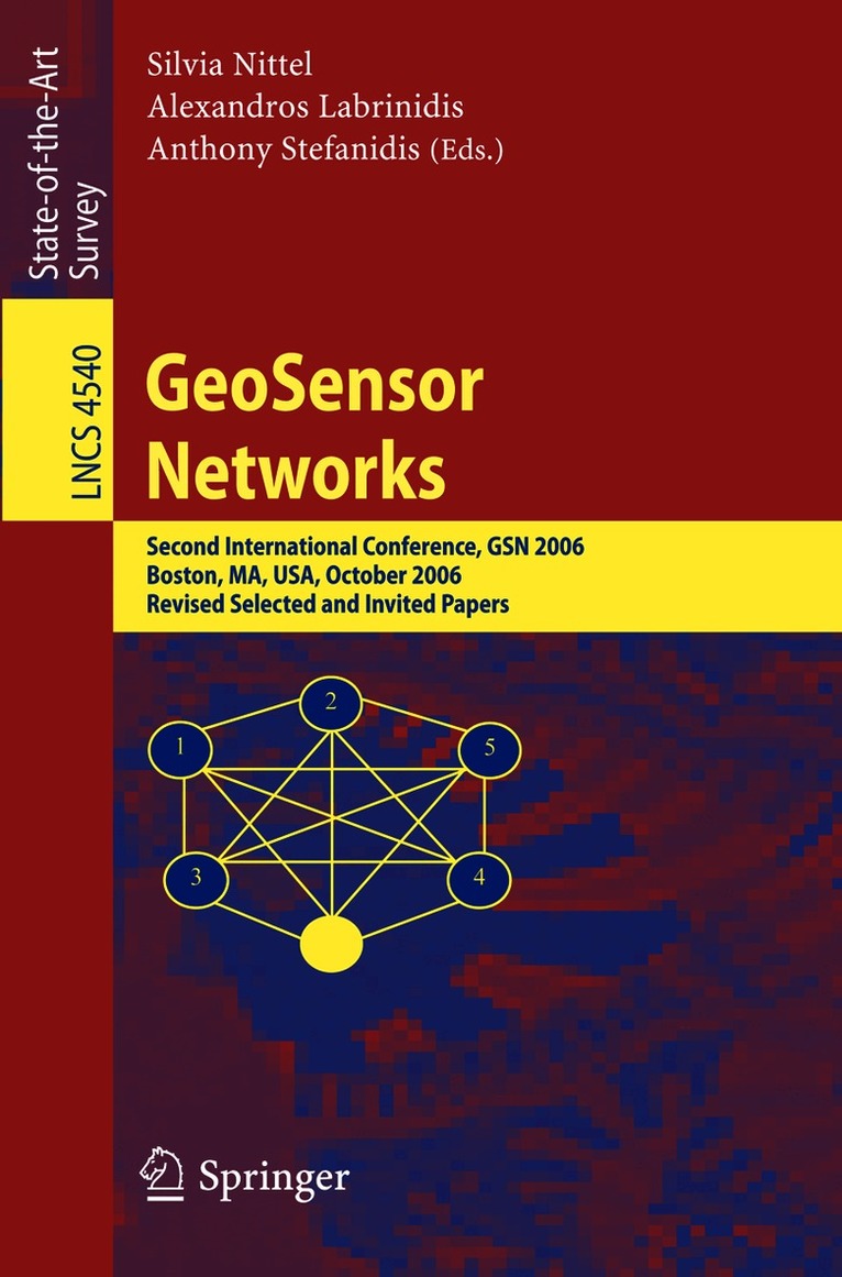 This volume serves as the post-conference proceedings for the Second GeoSensor Networks Conference that was held in Boston, Massachusetts in October 2006. The conference addressed issues related to the collection, management, processing, ana- sis, and delivery of real-time geospatial data using distributed geosensor networks. This represents an evolution of the traditional static and centralized geocomputational paradigm, to support the collection of both temporally and spatially high-resolution, up-to-date data over a broad geographic area, and to use sensor networks as actuators in geographic space. Sensors in these environments can be static or mobile, and can be used to passively collect information about the environment or, eventually, to actively influence it. The research challenges behind this novel paradigm extend the frontiers of tra- tional GIS research further into computer science, addressing issues like data stream processing, mobile computing, location-based services, temporal-spatial queries over geosensor networks, adaptable middleware, sensor data integration and mining, au- mated updating of geospatial databases, VR modeling, and computer vision. In order to address these topics, the GSN 2006 conference brought together leading experts in these fields, and provided a three-day forum to present papers and exchange ideas.