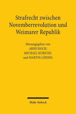Im November 2018 jährte sich die Ausrufung der Republik zum einhundertsten Mal. Die Umbruchphase war mit großen Hoffnungen verbunden, führte jedoch zu bürgerkriegsähnlichen Zuständen und mündete in dementsprechenden Enttäuschungen. Obwohl die Phase zwischen der Novemberrevolution und der Etablierung der ersten deutschen Republik im Laufe des Jahres 1919 eine tiefe Zäsur markiert, ist sie bislang nur ausschnittsweise Gegenstand rechtshistorischer Forschung gewesen. Das gilt insbesondere für die Frage, ob und inwieweit in dieser kurzen Zeit zwischen Revolution und Republik die Grundlagen für strafrechtliche Institutionen und Denkfiguren gelegt wurden, welche die Weimarer Republik prägten und (in radikalisierter Form) bis zur NS-Zeit fortwirkten.Mit Beiträgen von:Martin Asholt, Verena Dorn-Haag, Sven Großmann, Arnd Koch, Michael Kubiciel, Martin Löhnig, Monika Polzin, Mareike Preisner, Hubert Seliger, Daniel Siemens, Dietmar Süß, Benno Zabel, Sascha Ziemann