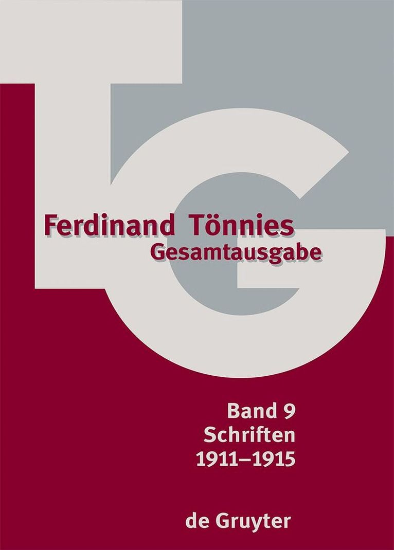 The printed life work of a founder of German sociology is made accessible to international research and teaching through this complete edition. The Ferdinand Tonnies Gesamtausgabe / TG is projected at 24 volumes. In the 9th volume of the TG, monographs, writings and reviews by Ferdinand Tonnies are edited from the following areas: general political writings; writings on the World War I; statistical writings; sociological and national-economic writings; historical writings; philosophical writings; writings on the politics of economics and society; writings on the politics of culture and education; writings on race and racism; and remarks by Tonnies on individual persons.