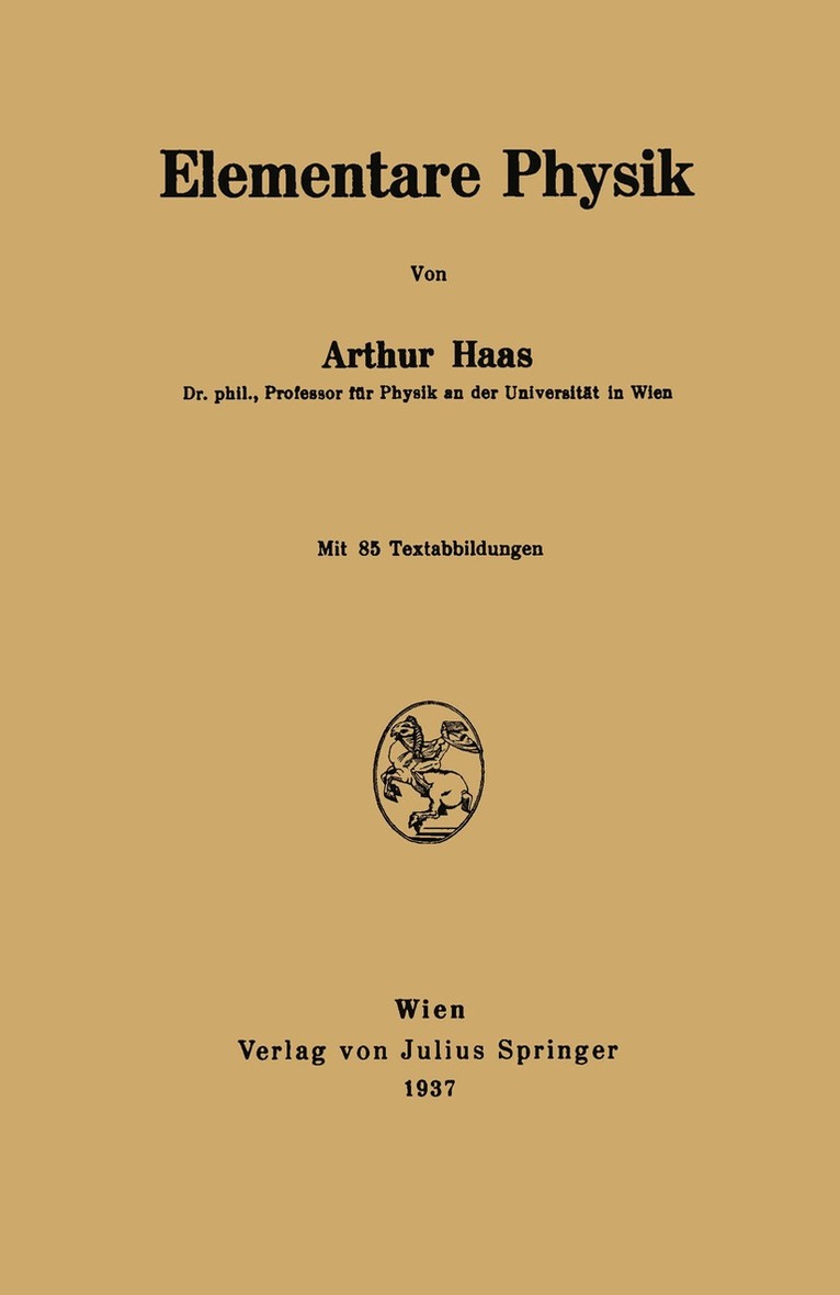 Arthur Haas: Einführung in Die Theoretische Physik Mit Besonderer Berücksichtigung Ihrer Modernen Probleme. Band 1