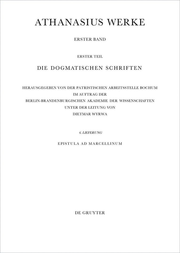 The first modern, text-critical edition of the Epistula ad Marcellinum by Athanasius of Alexandria presents all of the transmitted manuscripts including the Oriental versions.