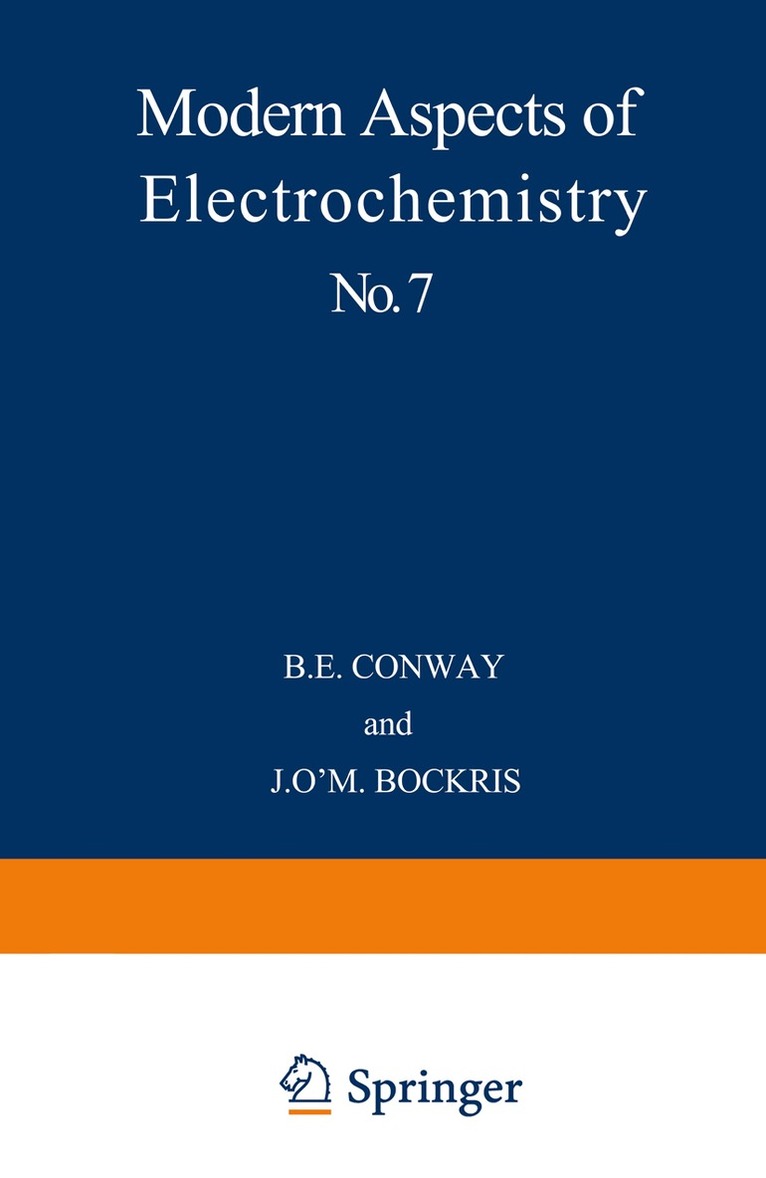 As the subject of electrochemistry moves into the final quarter of the century, a number of developed areas can be assessed in depth while some new areas provide quantitatively and qualitatively novel data and results. The first chapter, by Kebarle, deals with an example of the latter type of field in which new information of the energetics and equilibria of reactions between ions and solvent molecules is studied in the gas phase and provides interesting basic information for treatments of ions in solution, i.e., ionic solvation. Chapter 2, by Hamann, discusses the behavior of electrolyte solutions under high pressures, a matter of intrinsic interest in relation to ion-solvent interaction and the structural aspects of the properties of ionic solutions, especially in water. This topic is also of current interest with regard to the physical chemistry of the marine environment, especially at great depths. In the article by Bloom and Snook (Chapter 3), models for treatments of molten salt systems are examined quantitatively in relation to the structure of molten ionic liquids and to the statistical mechanical approaches that can be meaningfully made to interpret their properties and electrochemical behavior.