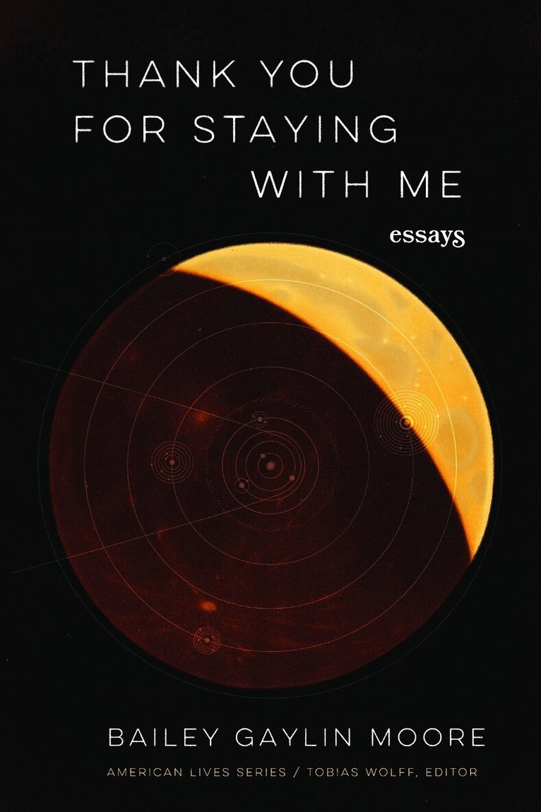 Urgent, meditative, and searching, Thank You for Staying with Me is a collection of essays that navigates the complexities of home, the vulnerability of being a woman, mother-daughter relationships, and young motherhood in the conservative and religious landscape of the Ozarks. Using cosmology as a foil to discuss human issues, Bailey Gaylin Moore describes praying to the sky during moments of despondency, observing a solar eclipse while reflecting on what it means to be in the penumbra of society, and using galaxy identification to understand herself. During a collision of women’s rights, gun policy, and racial tension, Thank You for Staying with Me is a frank and intimate rumination on how national policy and social attitudes affect both the individual and the public sphere, especially in such a conservative part of the United States.