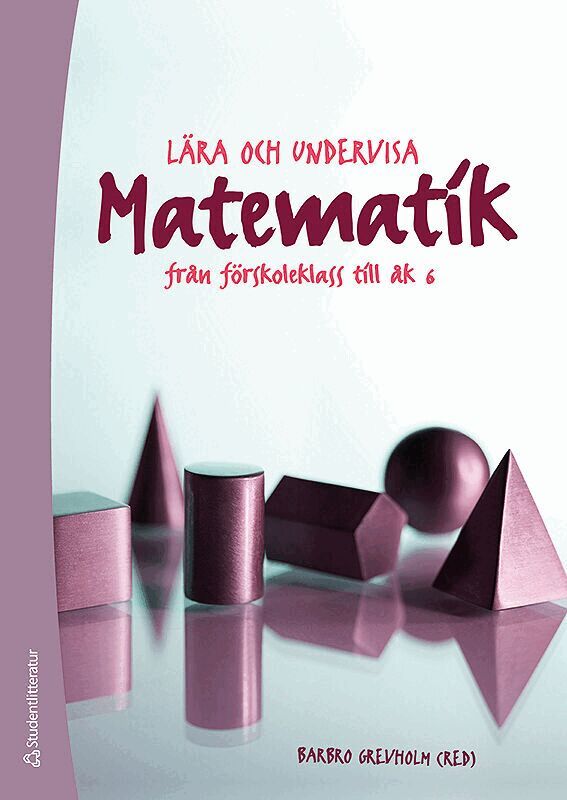 Lära och undervisa matematik – från förskoleklass till åk 6 är en grundbok i matematik och matematikämnets didaktik. Den vänder sig till lärarstuderande och till verksamma lärare som vill aktualisera sina kunskaper och ta del av den senaste forskningen samt sätta sig in i de nya kursplanerna och kunskapskraven i matematik. Ämneskunskaperna är sammanvävda med ämnesdidaktiken, allt för att skapa en helhet som i möjligaste mån svarar mot en lärares arbete. Varje kapitel behandlar de delar som dagens och morgondagens F–6-lärare ska kunna. Bland annat kan nämnas kommunikation och lärande i matematik, aritmetik och algebra, geometri och statistik, problemlösning och bedömning. Dessutom poängteras vikten av den röda tråden som ska löpa från förskolan och hela vägen upp för att skapa mening och lust att ta sig vidare i ett av skolans viktigaste ämnen. I konsekvensens namn inleds boken med ett kapitel om de allra yngsta barnens lärande. Läsaren ges många tillfällen att pröva och utveckla sin egen matematiska förmåga och kompetens. Här finns många övningar och diskussionsmöjligheter och nya forskningsrön, blandat med författarnas egen gedigna lärarerfarenhet. Framför allt är detta en bok för lärares egen professionella utveckling. Förhoppningen är att läsaren ska få en personlig säkerhet vad gäller innebörden av termer och begrepp och nå en djupare matematisk förståelse som mynnar ut i kompetens i ämnet och rustar för en intressant lärargärning som ger lust att hela tiden lära mer. Under fliken Extramaterial finns en ledning för att lösa problemen i kapitel 5. Lära och undervisa matematik har tidigare givits ut av Norstedts men ingår numera i Studentlitteraturs sortiment.
