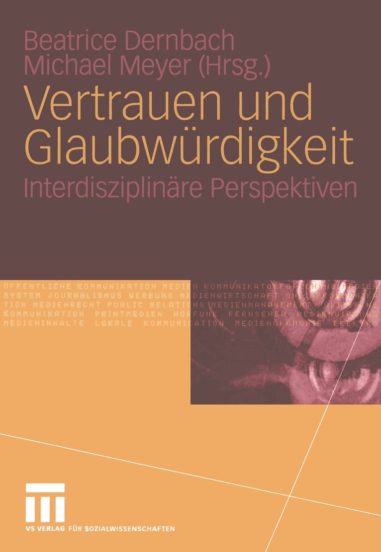 Vertrauenswurdigkeit von offentlichen Personen und Institutionen ist fur jeden Einzelnen ein wichtiges Kriterium und grosstes Problem bei der Meinungsbildung. Eine Diskussion aus der Sicht der Psychologie, der Publizistik, der Politik, der Wirtschaft, der Philosophie, des Rechts und der Kunst kann helfen, aus wechselseitigen Perspektiven neue und ubergreifende Einsichten in die Funktion von Vertrauen fur die Beziehungen zwischen Personen und Institutionen zu gewinnen.