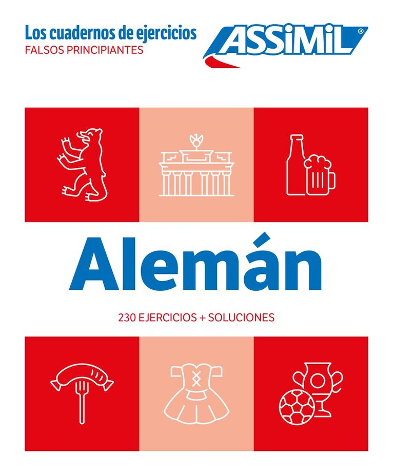 230 German exercises for Spanish speakers. This highly practical yet playful exercise book, has been designed specifically for false beginners in German. There are over 200 progressively challenging exercises designed as games, along with answers. At the end of each chapter, you can also self-assess your language level. No aspect of the language has been left out: conjugation, grammar, cases, spelling, vocabulary and syntax.