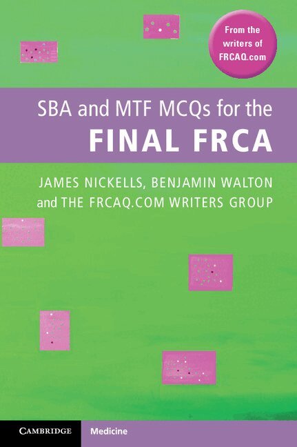 Preparing for the Final FRCA? Wondering what to expect of the SBA questions? Help is at hand. This practical book contains 60 single best answer and 120 multiple true/false questions to help you revise for the Final FRCA MCQ exam. Each question is accompanied by detailed explanations, giving additional information on each topic to enhance revision. SBA and MTF MCQs for the Final FRCA may be used both for examination practice and as a source of knowledge on many of the key topics in the syllabus. A helpful introductory section gives practical advice on how to approach revision and sitting the exam. From the writing team behind the FRCAQ.com website (www.frcaq.com), an outstanding exam preparation source for both the Primary and Final FRCA, this book provides challenging questions and well researched explanations to help you through the Final FRCA MCQ paper. An invaluable tool for your MCQ exam preparation.