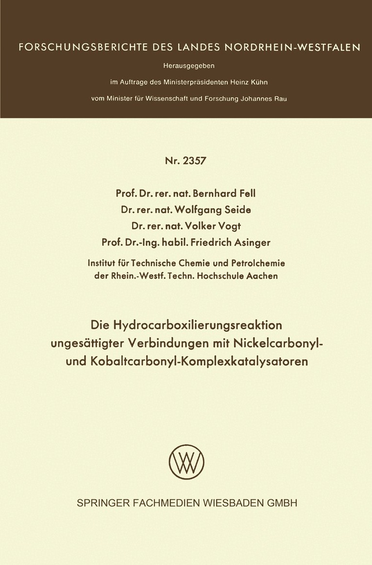 Die Hydrocarboxilierungsreaktion ungesättigter Verbindungen mit Nickelcarbonyl- und Kobaltcarbonyl-Komplexkatalysatoren
