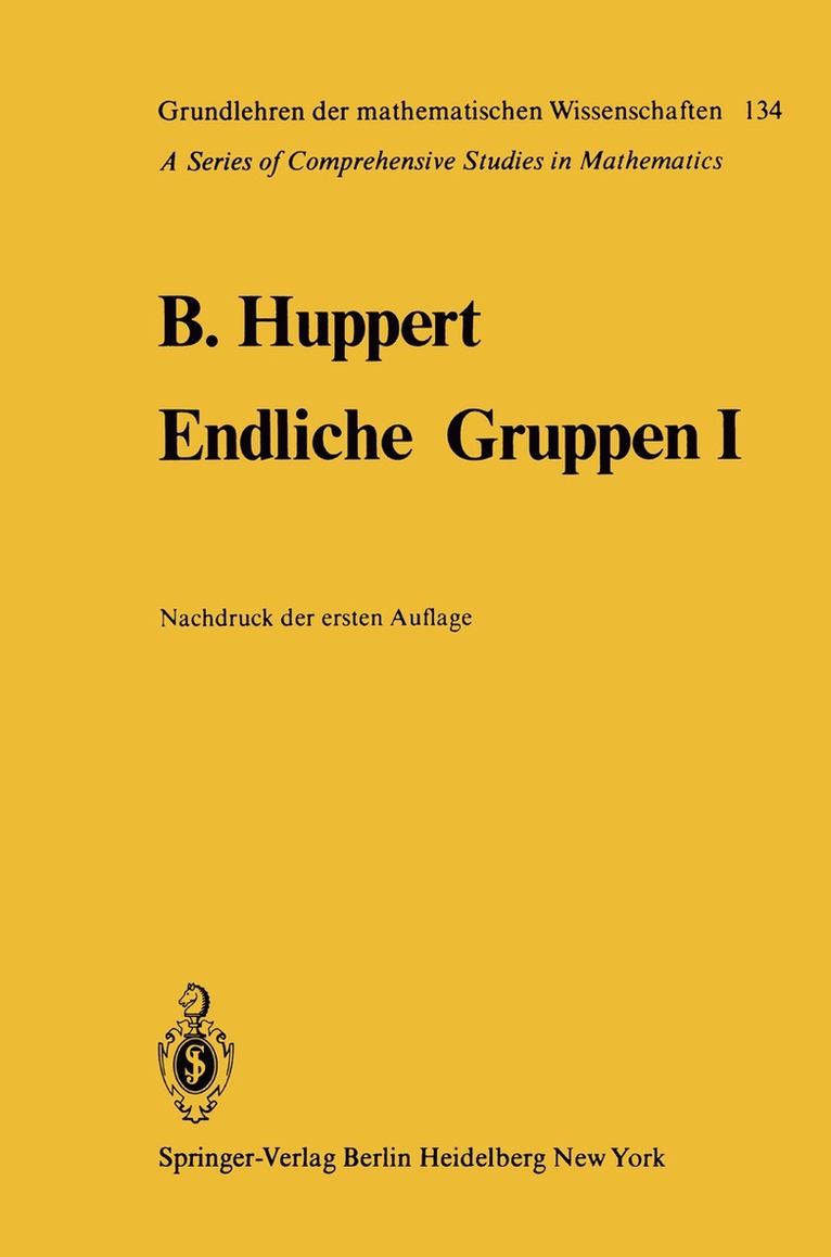 Since its publication in 1967, Bertram Huppert’s influential Endliche Gruppen I has remained a standard reference on group theory, with its clear, precise and complete exposition. The present volume makes this classic text available in English for the first time, updated with modern notation and notes.In addition to foundational material, the book contains the theory of permutation groups, linear groups, p-groups, nilpotent groups and solvable groups, as well as the transfer homomorphism and ordinary representation theory. All topics are fully developed and accessible to students with a basic knowledge of algebra. Its comprehensive coverage and inclusion of more advanced topics make this self-contained treatise an invaluable resource for graduate students and researchers.
