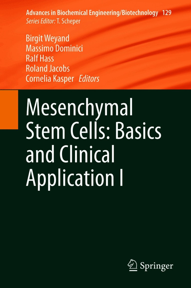 Engineered MSCs from Patient-Specific iPS Cells, by Irina Eberle, Mohsen Moslem, Reinhard Henschler, Tobias Cantz Fate of Intravenously Injected Mesenchymal Stem Cells and Significance for Clinical Application, by Beate Wagner, Reinhard Henschler The Implications of Stem Cell Applications for Diseases of the Respiratory System, by Mei Ling Lim, Philipp Jungebluth, Paolo Macchiarini Potential of Mesenchymal Stem Cell Applications in Plastic and Reconstructive Surgery, by Birgit Weyand, Peter M. Vogt General Principles for the Regeneration of Bone and Cartilage, by Michael Jagodzinski, C. Haasper Adult Mesenchymal Stem Cells Explored in the Dental Field, by K. M. Fawzy El-Sayed, C. Dörfer, F. Fändrich, F. Gieseler, M. H. Moustafa, H. Ungefroren Mesenchymal Stem Cell Therapy and Lung Diseases, by Khondoker M. Akram, Sohel Samad, Monica Spiteri, Nicholas R. Forsyth Mesenchymal Stem Cells as Cellular Immunotherapeutics in Allogeneic Hematopoietic Stem Cell Transplantation, by Claudia Papewalis, Daniela Topolar, Barbara Götz, Stefan Schönberger, Dagmar Dilloo New Cell-Based Therapy Paradigm: Induction of Bone Marrow-Derived Multipotent Mesenchymal Stromal Cells into Pro-Inflammatory MSC1 and Anti-inflammatory MSC2 Phenotypes, by Aline M. Betancourt Interactions Between Mesenchymal Stem Cells and Dendritic Cells, by Grazia Maria Spaggiari, Lorenzo Moretta MSC and Tumors: Homing, Differentiation, and Secretion Influence Therapeutic Potential, by Naomi D’souza, Jorge Sans Burns, Giulia Grisendi, Olivia Candini, Elena Veronesi, Serena Piccinno, Edwin M. Horwitz, Paolo Paolucci, Pierfranco Conte, Massimo Dominici Sources of Mesenchymal Stem Cells: Current and Future Clinical Use, by Michela Pozzobon, Martina Piccoli, Paolo De Coppi Role of the EU Framework in Regulation of Stem Cell-Based Products, by Giovanni Migliaccio, Cristina Pintus