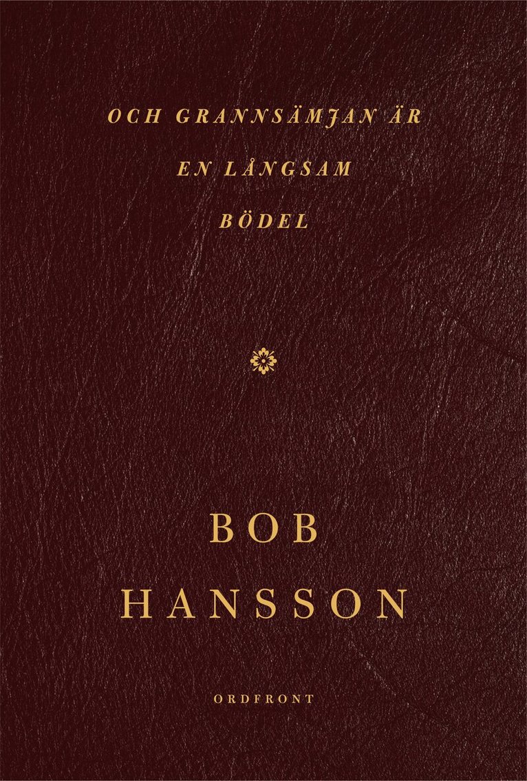 Så fortsätter det att vara i den nya boken, men i och grannsämjan är en långsam bödel märks även ett mörker, en svärta som vill påminna oss om något. Det är en djupare och allvarligare röst som inte viker för det svåra, men som fortfarande bjuder in till tröst och längtan. Hans bildspråk snuddar vid Tranströmers och Szymborskas enkelhet, men först och främst är rösten hans egen. Bob Hansson har alltid skrivit en poesi som skilt sig från trenderna i den svenska samtidslyriken, en röst som stått bredvid. Bob Hansson är en fantastisk författare, oavsett vad han skriver, men som diktare är han helt unik.