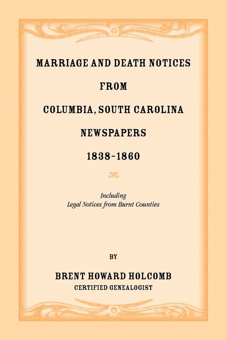 Marriage and Death Notices from Columbia, South Carolina, Newspapers, 1838-1860, including legal notices from burnt counties