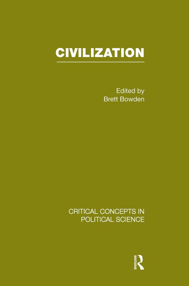 Especially since the end of the Cold War, the concept of ‘civilization’ has been frequently deployed by those who seek to describe and explain the world in which we live. The events of 11 September 2001, and the subsequent ‘war on terror’, have further elevated the concept's use in the discourse of politics and international relations. There has, for instance, been feverish speculation and increasingly heated rhetoric about struggles ‘for civilization’ or a possible ‘clash of civilizations’, particularly between the West and the Islamic world. The term is used both to describe—and to cast value-laden judgements about—people, places, and events. It is often misinterpreted and misapplied, with sometimes dangerous consequences.In response to the revival and misuse of ‘civilization’, this new four-volume collection from Routledge Major Works meets the need for an authoritative reference work to make sense of a vast and growing scholarly literature. It brings together canonical and the best cutting-edge research to provide a comprehensive overview of the origins, contested meanings, contextual applications, and general history of this critical concept.Volume I (‘The Origins and Meaning of Civilization’) is made up of the best work from a distinguished line-up of political scientists, philosophers, historians, sociologists, and linguists. It outlines the origins of the concept and its many and disputed meanings. This first volume establishes the foundations on which much of the analysis included in the three subsequent volumes is based. Volume II (‘Civilization, Civilizations, Progress, and History’) includes a range of materials that intimately outline the relationship between the ideal of civilization and the idea of progress, including progress in the social, cultural, moral, scientific, and political realms. Research gathered here further examines how the concepts of civilization and progress in turn relate to the more general passage of history, particularly the idea of history with a purpose. Volume III (‘Civilization and its Others’) brings together the best scholarship to explore what civilization is not. The scholarship collected here comes from some of history’s most distinguished political scientists, leading international lawyers, anthropologists, and controversial ethnologists. Can one, for example, usefully draw a distinction between civilized, savage, and barbarian peoples? The final volume (‘Civilizational Relations: Past, Present, and Future’) enables researchers and students to navigate through the equally sensitive field of historical and contemporary relations between the world’s major civilizations or religio-cultural groups. It includes the catalysts of debates such as ‘the clash-of-civilizations thesis’ and the responses it has provoked.With a full index, together with a comprehensive introduction, newly written by the editor, which places the collected material in its historical and intellectual context, Civilization is an essential work of reference. It is destined to be valued by scholars, students, and researchers of politics, political philosophy, and international relations—as well as those working in allied disciplines such as security studies and international law—as a vital research resource.