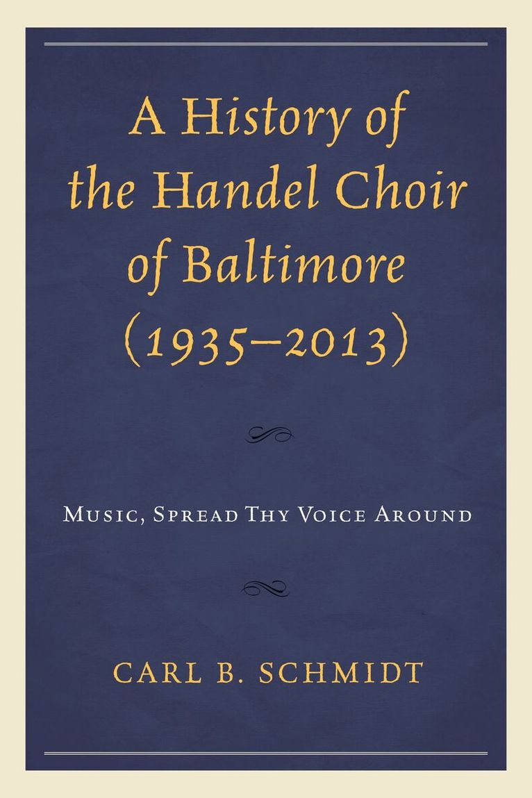 A History of the Handel Choir of Baltimore (1935-2013): Music, Spread Thy Voice Around chronicles the history of one of America’s longstanding volunteer choral organizations, one that has followed in the footsteps of venerable ensembles such as the Handel and Haydn Society (Boston), the Bethlehem Bach Choir, and the Handel Society of Dartmouth College. It begins by considering music in the city of Baltimore, and establishing the reasons surrounding the choir’s formation. Substantial coverage is given to the influence of Katharine M. Lucke, one of Baltimore’s grandes dames—as a composer, mover, and shaker—and a vital force in Baltimore’s National Music Week from her position on the faculty of the Peabody Conservatory of Music. Subsequently the book focuses on the contributions of each of the ten conductor/music directors, the vicissitudes of funding a volunteer choir, the choir’s contributions to music education in the greater Baltimore metropolitan area, and the choir’s repertoire. The book contains extensive appendices describing the choir’s repertoire, its presidents, and its unbroken string of Messiah performances.Throughout more than seventy-five years, the Handel Choir of Baltimore has remained true to its original charter as an amateur choral organization that aspires to the highest standards of artistic excellence. A History of the Handel Choir of Baltimore is an invaluable resource to those interested in choral music studies, the running of an amateur, volunteer choir, and other disciplines of music studies.