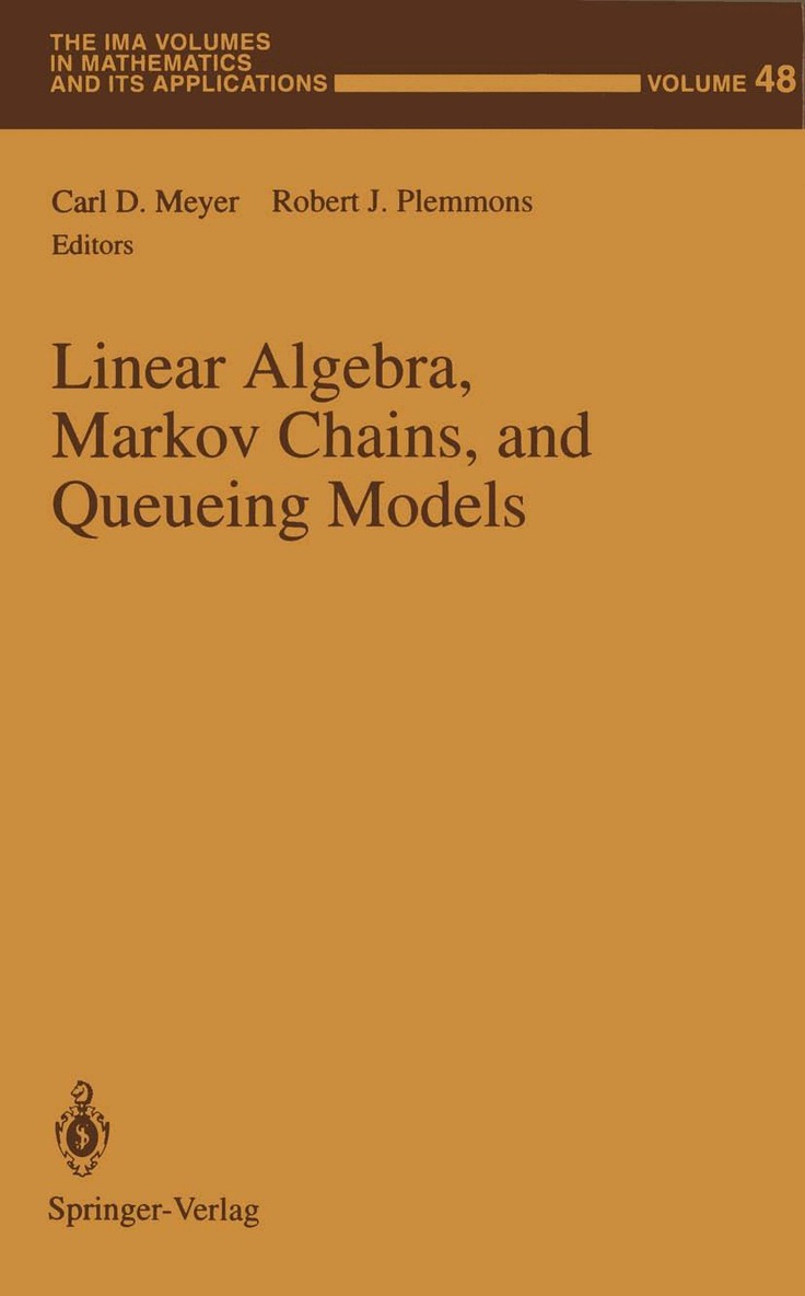 This IMA Volume in Mathematics and its Applications LINEAR ALGEBRA, MARKOV CHAINS, AND QUEUEING MODELS is based on the proceedings of a workshop which was an integral part of the 1991-92 IMA program on "Applied Linear Algebra". We thank Carl Meyer and R.J. Plemmons for editing the proceedings. We also take this opportunity to thank the National Science Founda tion, whose financial support made the workshop possible. A vner Friedman Willard Miller, Jr. xi PREFACE This volume contains some of the lectures given at the workshop Lin ear Algebra, Markov Chains, and Queueing Models held January 13-17, 1992, as part of the Year of Applied Linear Algebra at the Institute for Mathematics and its Applications. Markov chains and queueing models play an increasingly important role in the understanding of complex systems such as computer, communi cation, and transportation systems. Linear algebra is an indispensable tool in such research, and this volume collects a selection of important papers in this area. The articles contained herein are representative of the underlying purpose of the workshop, which was to bring together practitioners and re searchers from the areas of linear algebra, numerical analysis, and queueing theory who share a common interest of analyzing and solving finite state Markov chains. The papers in this volume are grouped into three major categories-perturbation theory and error analysis, iterative methods, and applications regarding queueing models.